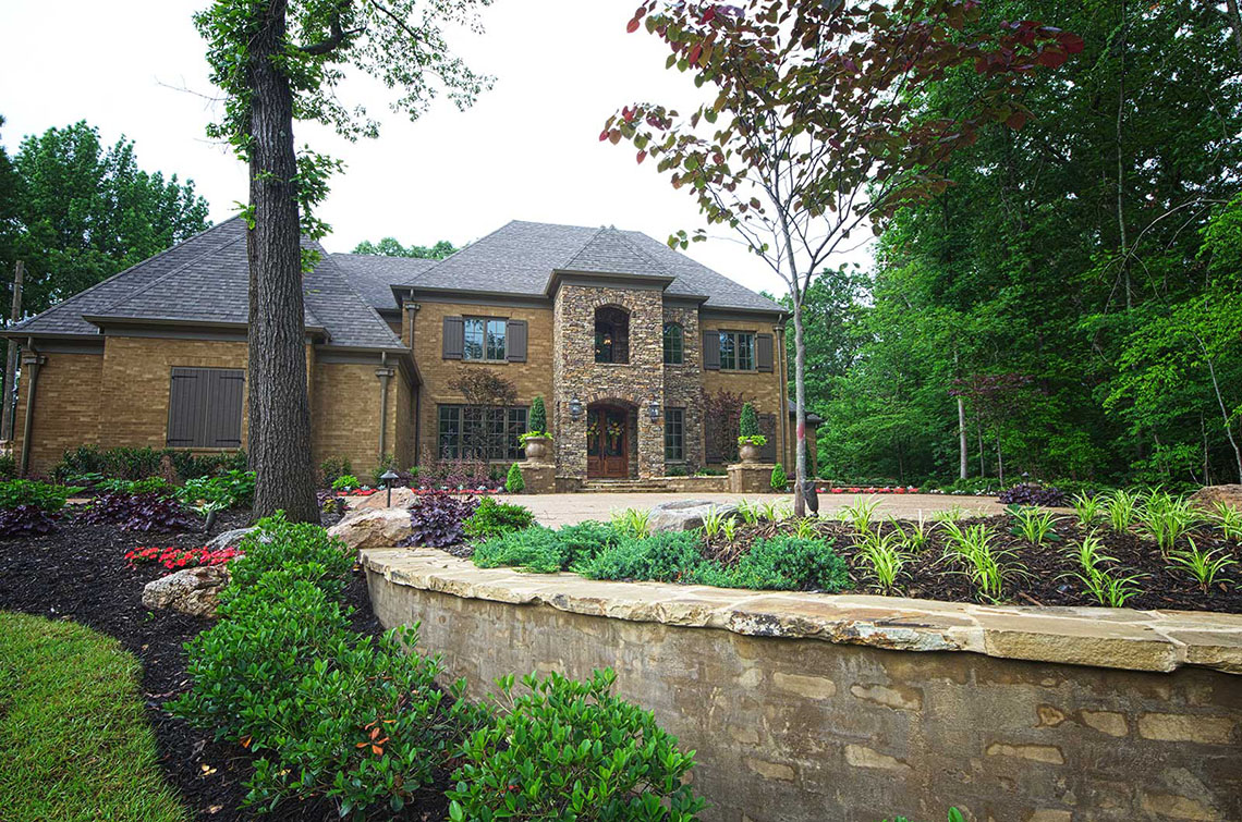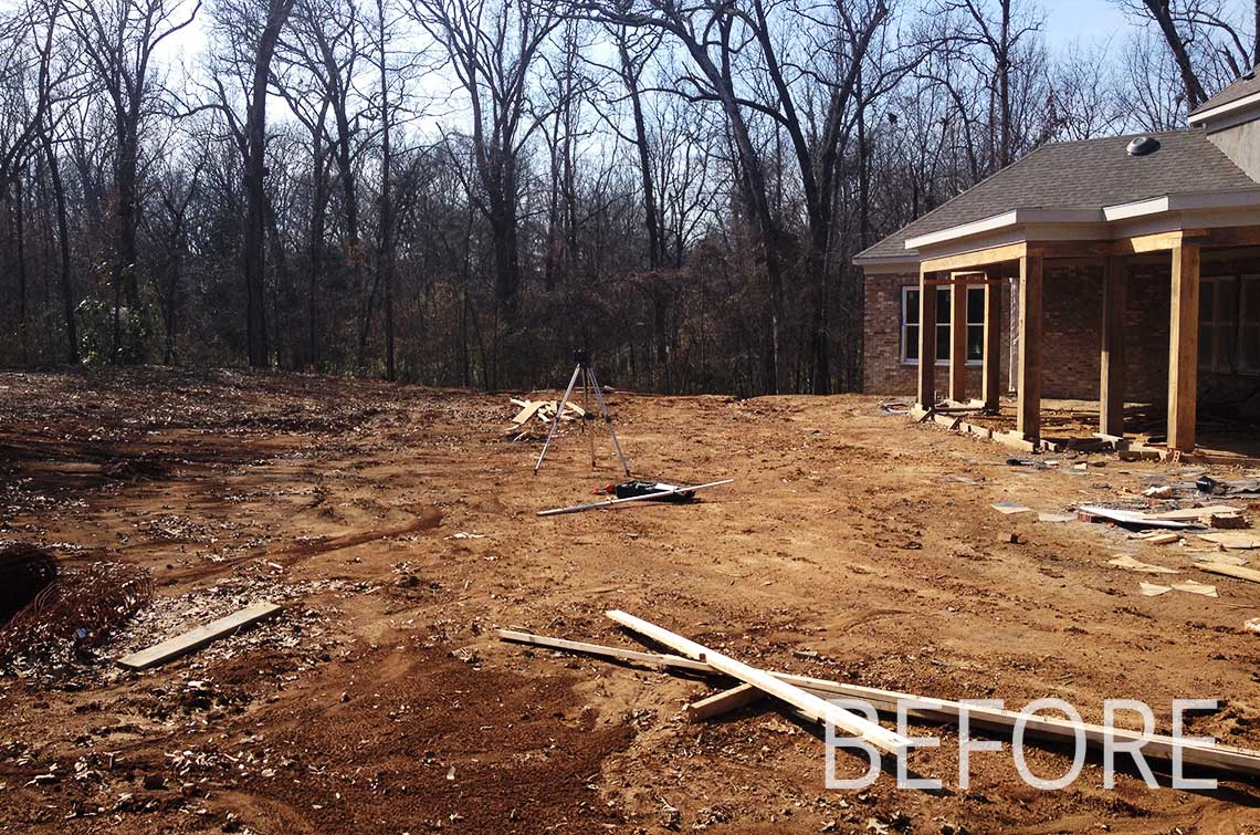 Tucked away in the heart of East Memphis, this beautiful property incorporates all 8 categories listed in the ‘Our Services’ section of the website: site planning, project management, landscape design, water features, custom pools, outdoor living, carpentry and lighting & irrigation. When first contacted by the owners, the property’s home was under construction on merely a vacant lot. The properties abandoned home had been torn down and many dead or diseased trees had been removed. Part of the work-scope presented to Camp Creek Landscape was determining the remaining trees to remain, trees to be removed and how to provide vehicular access to the home for both residents and guest. The homeowners had a major concern that the builder had already removed to many trees and they stressed with heavy emphasis that part of our job was to preserve as many of the remaining trees as possible. The wish list was lengthy and challenging but the end results are absolutely stunning.