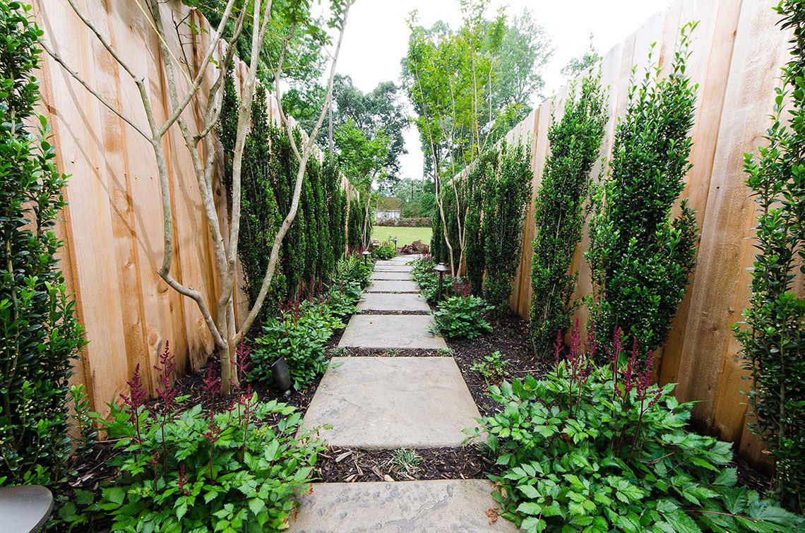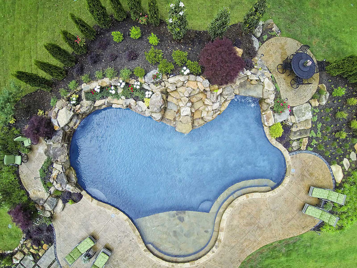 Tucked away in the heart of East Memphis, this beautiful property incorporates all 8 categories listed in the ‘Our Services’ section of the website: site planning, project management, landscape design, water features, custom pools, outdoor living, carpentry and lighting & irrigation. When first contacted by the owners, the property’s home was under construction on merely a vacant lot. The properties abandoned home had been torn down and many dead or diseased trees had been removed. Part of the work-scope presented to Camp Creek Landscape was determining the remaining trees to remain, trees to be removed and how to provide vehicular access to the home for both residents and guest. The homeowners had a major concern that the builder had already removed to many trees and they stressed with heavy emphasis that part of our job was to preserve as many of the remaining trees as possible. The wish list was lengthy and challenging but the end results are absolutely stunning.
